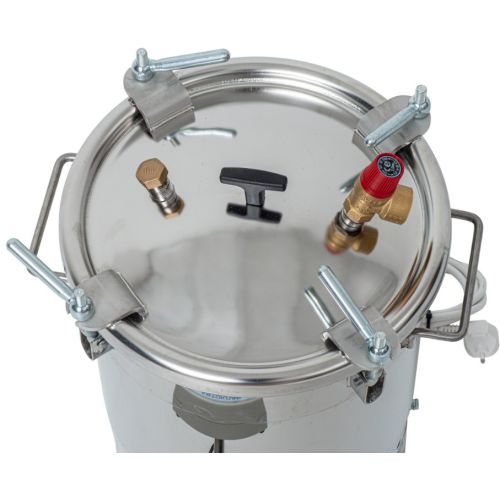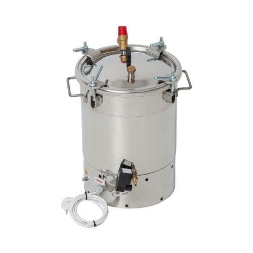 Домашний автоклав «Малыш Нерж с ЭБУ» рассчитан на 20 литров. Он выполняется из высококачественной нержавеющей стали AISI 304. Аппарат имеет полностью автоматизированный процесс стерилизации. Автоклав отлично подходит для приготовления консервов в домашних условиях. Он имеет несколько автоматических режимов консервации: «мясо», «птица», «рыба», и «прочее». С помощью последнего режима вы можете настроить автоклав по своим индивидуальным рецептам. Технические особенности аппарата, отличающие его от аналогов: